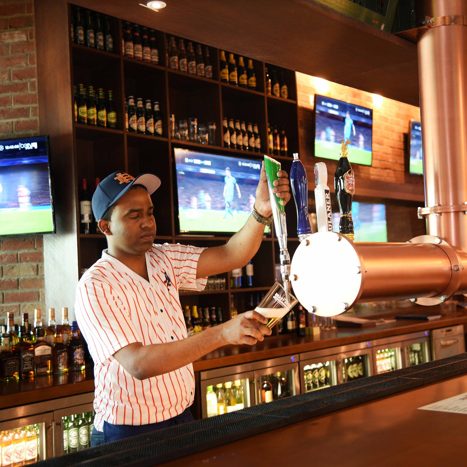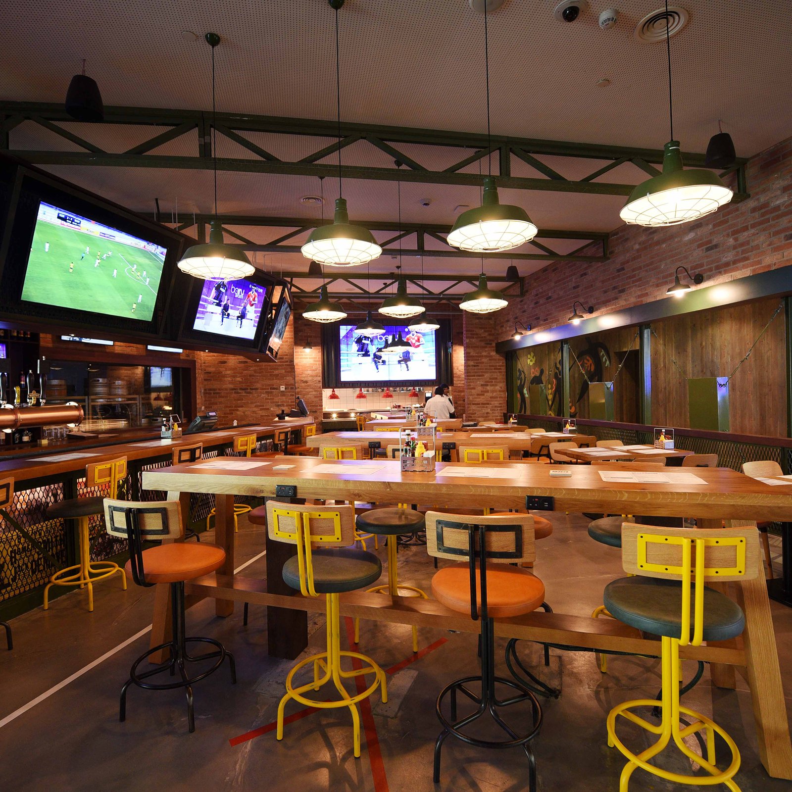 The Draft House is a vintage-inspired, collegiate sports-themed bar designed that offers a warm and welcoming environment for travelers. The Draft House delivers the perfect atmosphere with 31 screens and advanced sound localizing technology, guests can enjoy global sports broadcasts while savoring a menu of comfort food and family favorites.