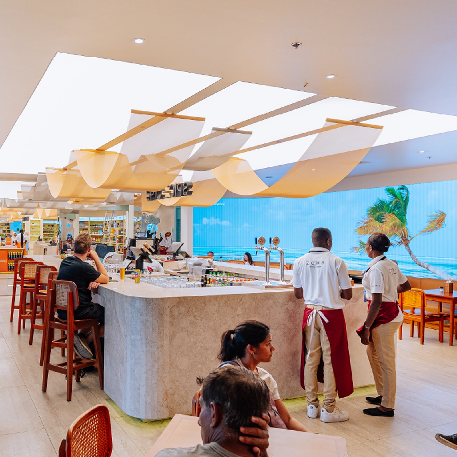 In November 2021, Emirates Leisure Retail and MMI - Maritime and Mercantile International were awarded a master concession contract for commercial operations in the new Terminal 3 at Zanzibar Abeid Amani Karume International Airport. Together we joined forces with a vision to create a world-class, next-generation customer experience. Roll on just over a year and we were proud to have delivered on that promise and unveil our integrated F&B, duty-free experience ZOMA. We challenged all conventions of the airport experience to create a destination in its own right, to allow passengers to continue their magical experience of Zanzibar. We created six ZOMA Zones, each inspired by the beautiful island.